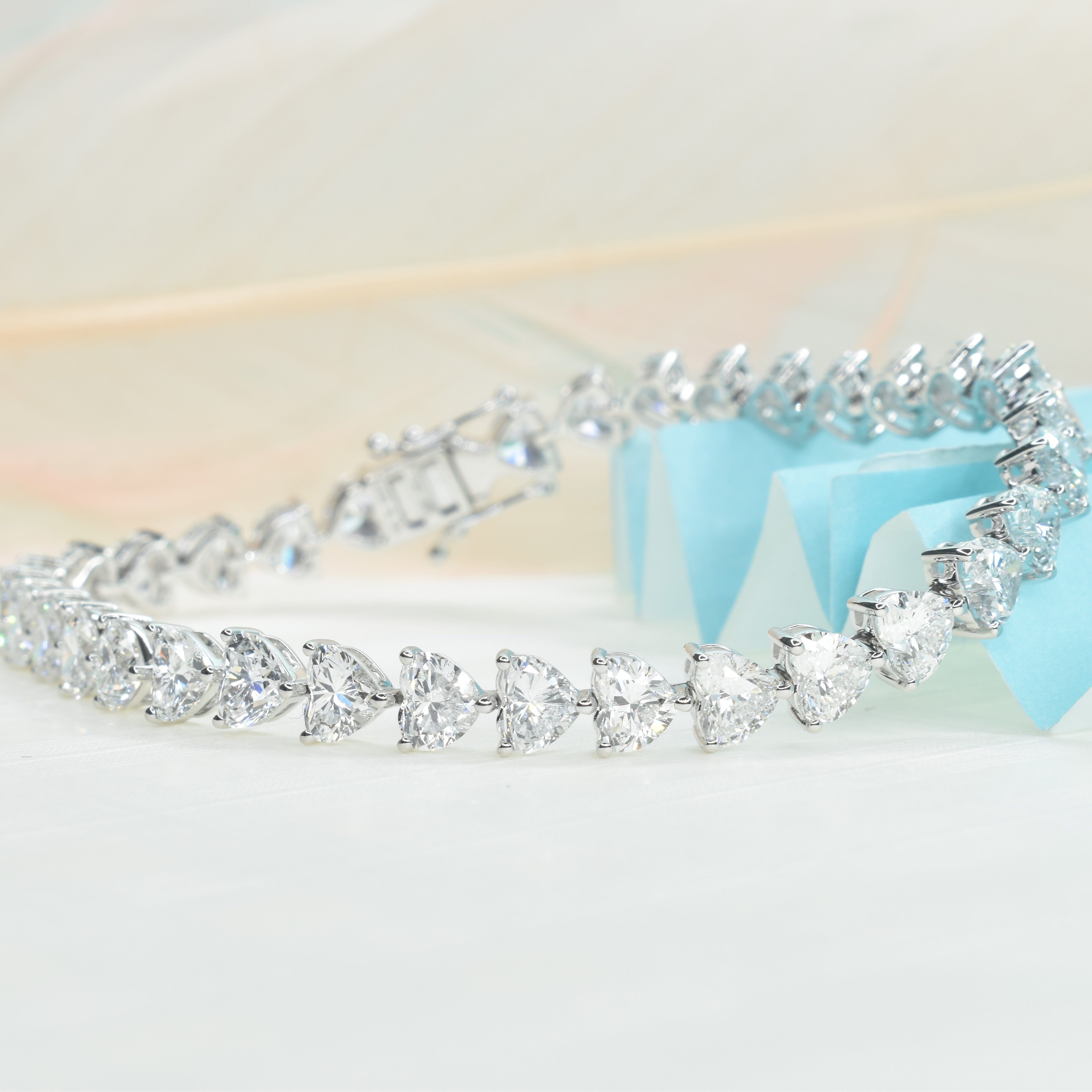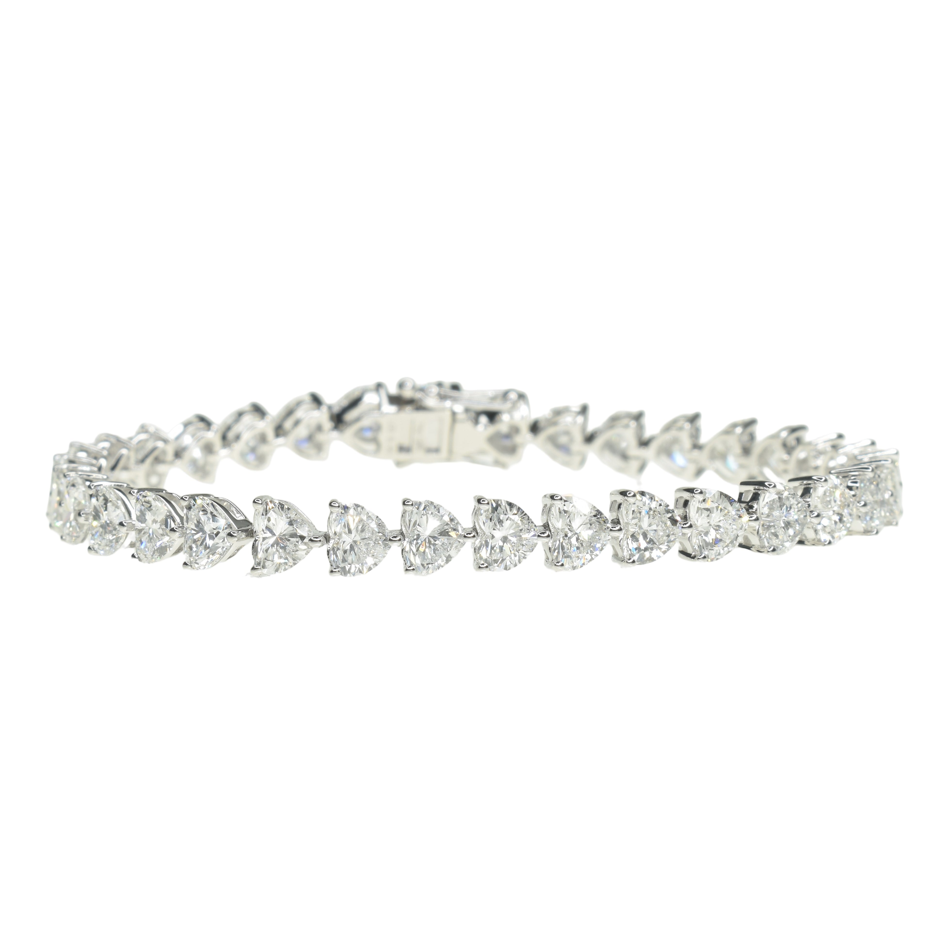 Featuring the cutest, well matched heart shaped diamonds averaging 0.25ct each, this stunning bracelet brings out our playful side. Just like a classic tennis bracelet, it can be worn everyday but has its own personality. Each lab grown heart shaped diamond is of a very high quality